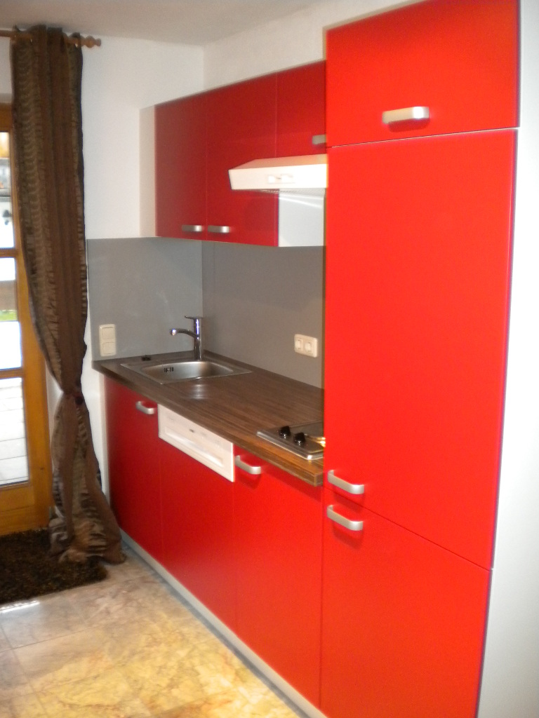 Wohnraum und Schlafnische, voll ausgestattete Kochnische mit Geschirrspüler, Essplatz, Mini-Backofen (Brötchen u.Baguette), Bad mit Whirlpool, WC, Vorraum, Balkon, bei A2 Sat TV