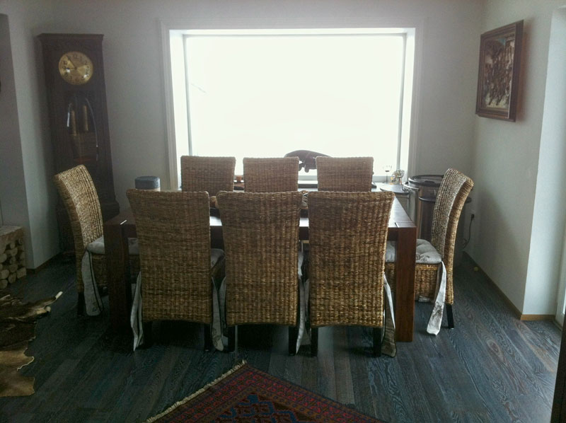 Sie fahren mit den Schiern vom Haus weg und wieder retour.